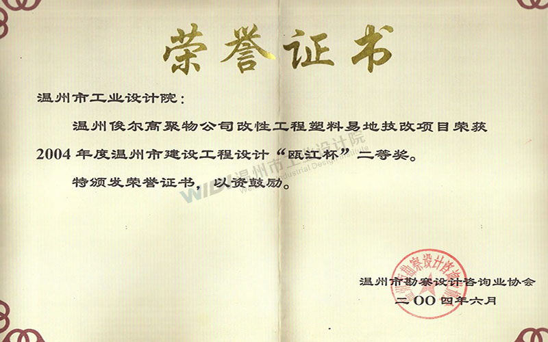溫州俊爾高聚物公司改性工程塑料異地技改項(xiàng)目 甌江杯二等獎(jiǎng)