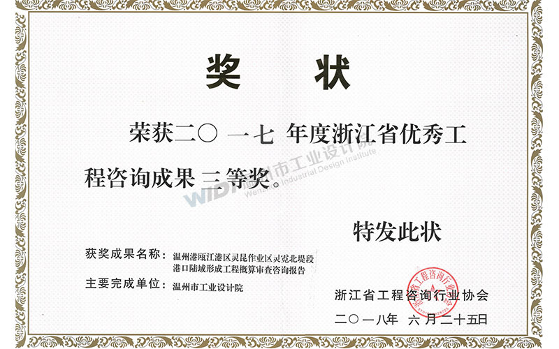 溫州港甌江港區(qū)靈昆作業(yè)區(qū)靈霓北堤段港口陸域形成工程概算審查咨詢報(bào)告 省優(yōu)秀工程咨詢成果三等獎(jiǎng)